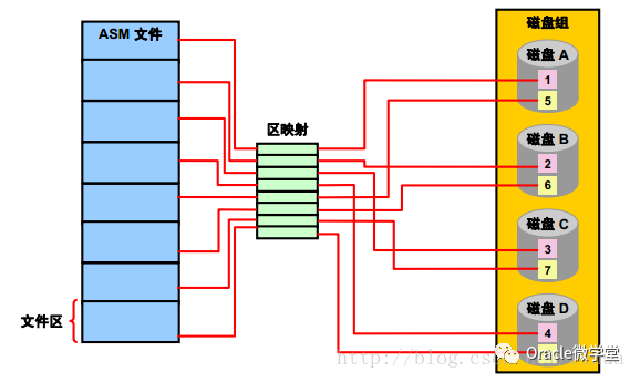 ASM 通过称为区映射的元数据跟踪文件的分布。区映射是一个表,将文件中的数据区映射到磁盘上的分配单元。