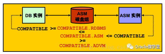 注:除了磁盘组兼容性,兼容参数(数据库兼容版本)确定了启用的功能;该参数适用于数据库或ASM 实例,具体取决于instance_type参数。例如,将该参数设置为10.1 将禁止使用Oracle Database 11g中引入的任何新功能(磁盘联机/脱机、可变区等)。