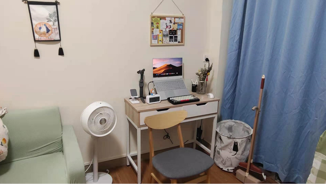 得找到房间里相对背景比较简洁美观的角落 大概看了看还是选择书桌作为背景吧 书桌的位置也调整了好多次