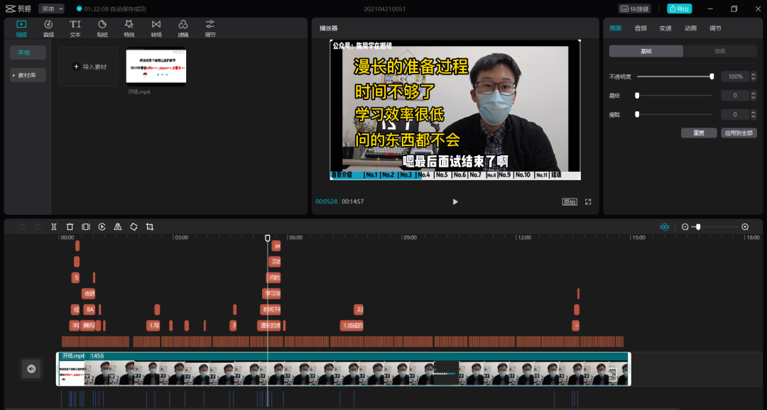 ,一些字幕差错需要自己微调 最后加音效,最后导出