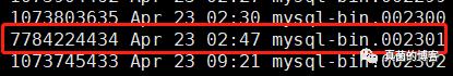 ,从库的确是卡在了主库的mysql-bin.002301这个文件上。