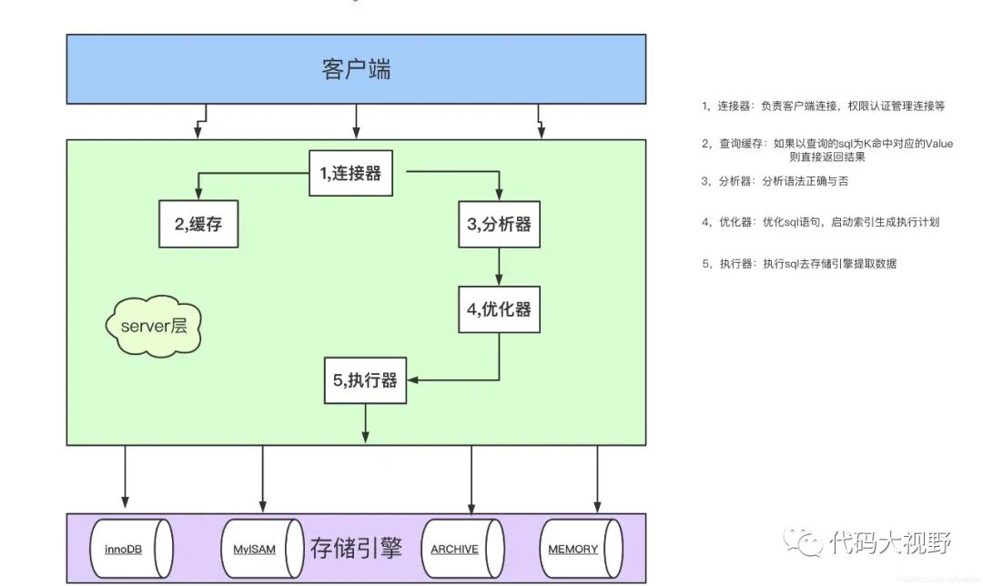 上图是我给出的是MySQL 的基本架构示意图,从中你可以清楚地看到 SQL 语句在 MySQL 的各个功能模块中的执行过程。