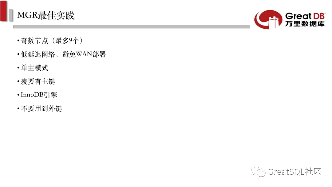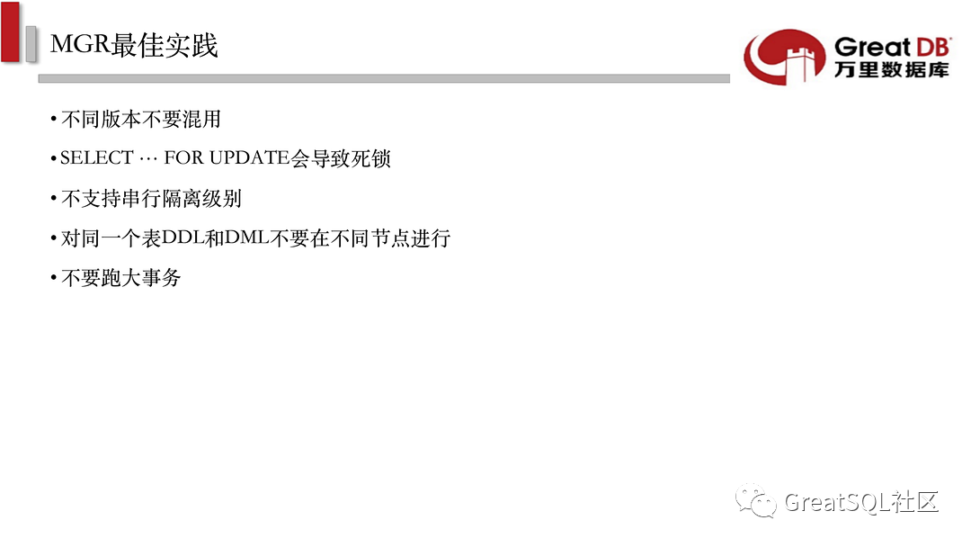 本次将PPT内容全部放出,并在文末附上助理微信号二维码,可添加助理微信加入GreatSQL/MGR交流微信群。