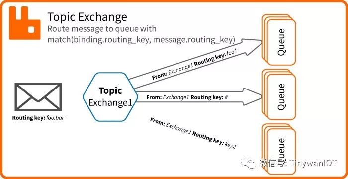 。任何发送到Topic Exchange的消息都会被转发到所有关心RouteKey中指定话题的Queue上。