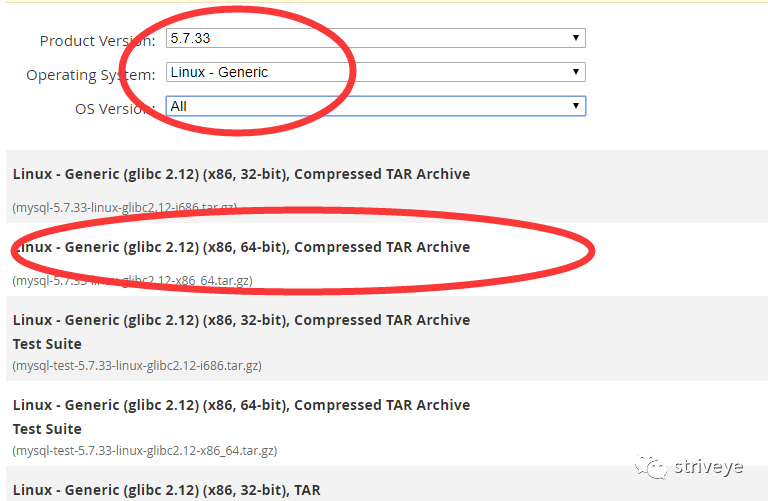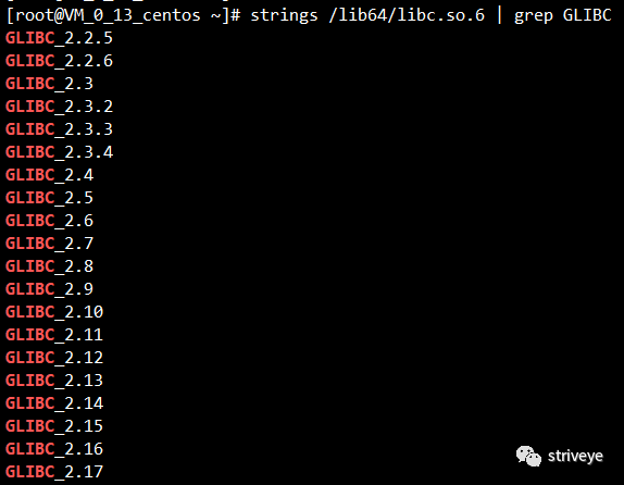 下载的 Mysql 安装包名称上有需要的 glibc 版本,通过命令查看现有 linux 服务器的 glibc 版本