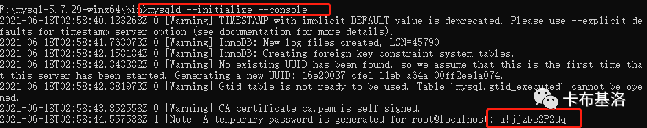 初始化完成后,会在最后一行出现密码,切记需要记住。