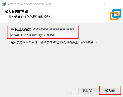 12.以下3个密钥任选其一复制粘贴到安装界面中许可证下面的框中,点击【输入】