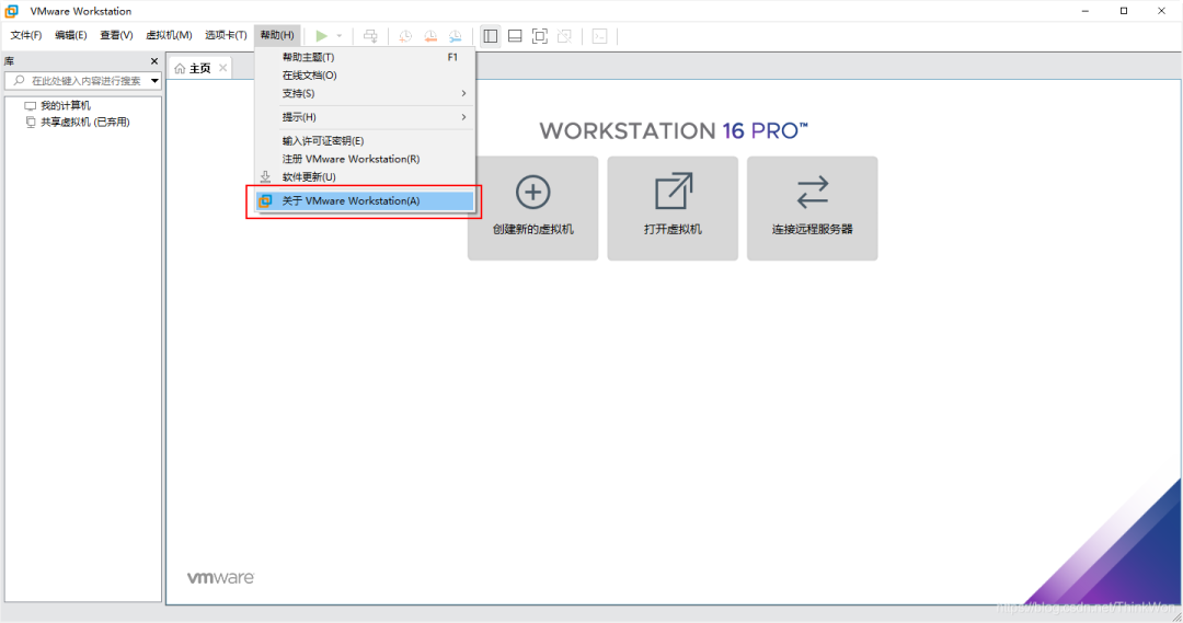 14.返回电脑桌面,双击VMware Workstation Pro图标进行启动,点击帮助下拉列表的关于VMware Workstation
