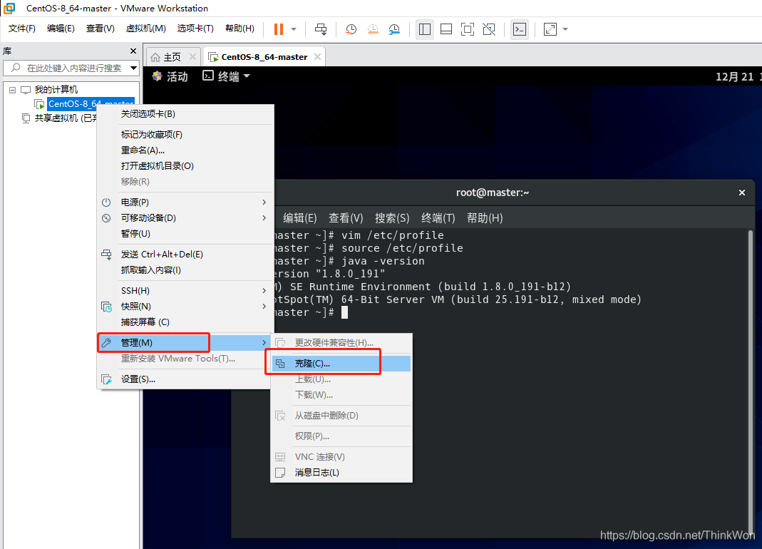 将虚拟机关机,右击虚拟机,单机“管理”-“克隆”