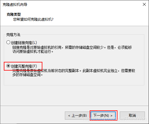 设置克隆类型,这里选择创建完整克隆,点击下一步