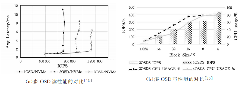 3)Ceph对新型存储介质的支持较差。在使用高速存储介质时,软件造成的时延比硬件导致的时延高出数十倍。社区也在开发面向新型存储介质的存储引擎。