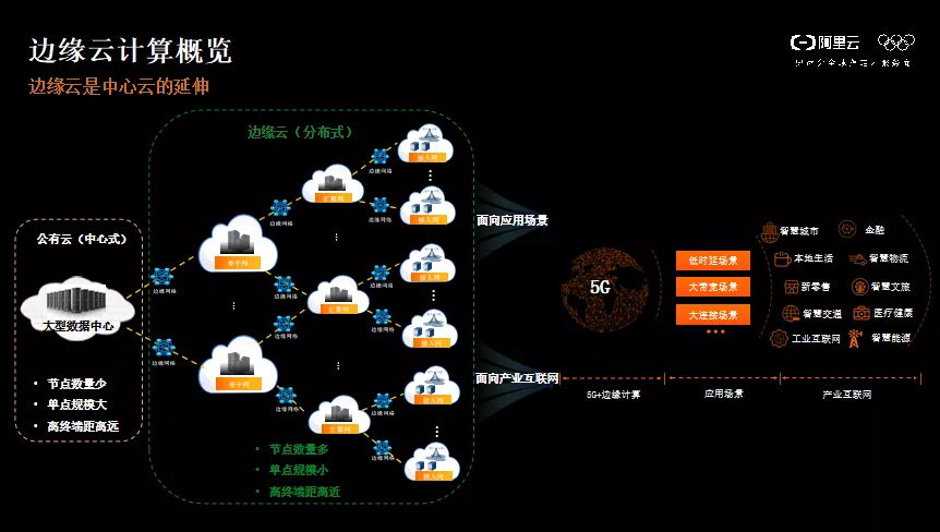 随着分布式云时代拉开帷幕,作为全球分布式云联盟的初创成员企业,阿里云结合自身丰富的技术积累和实践经验,融合分布式云计算的理念,赋予了边缘云全新的定义——从中心向边缘辐射,由大规模地域分散的边缘节点相互协同组成的一朵可远程管控、安全可信、标准易用的分布式云。
