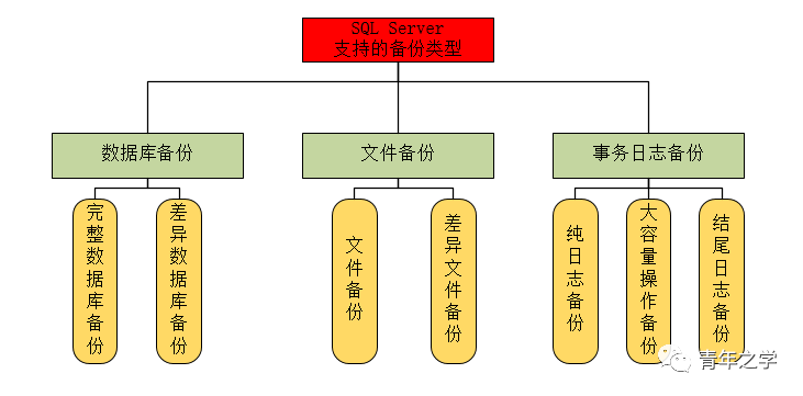 数据库的恢复模式决定了可以使用的备份类型,而数据库的备份类型决定了备份的内容。SQL Server支持的备份类型有如下几种。