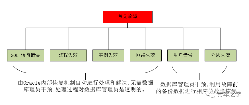 Oracle数据库将数据库系统常见故障类型分类如下图所示。