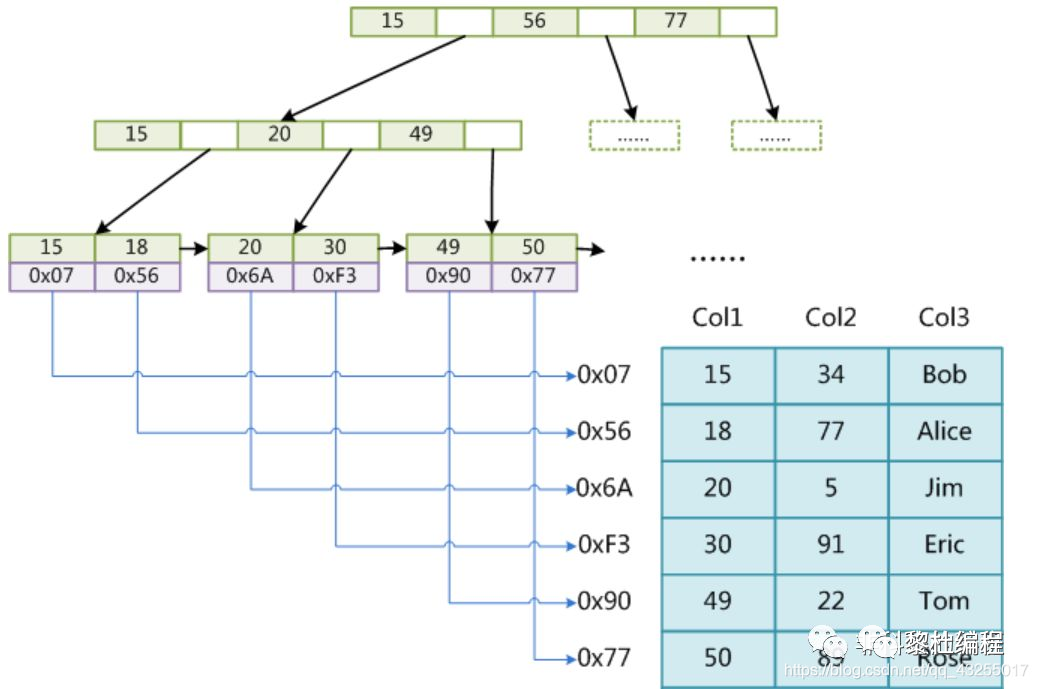 但是B树相对于B+树来说,在查找数据的时候,由于每一个节点都有可能包含目标数据,所以查找总是从根节点进行向下搜索,这个特点会带来大量的随机io。