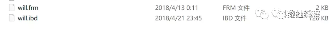在InnoDB中,数据和索引文件是合起来储存的,如图所示,InnoDB 的存储文件有两个,后缀名分别是 .frm 和 .idb,其中 .frm 是表的定义文件,而 idb 是数据文件。