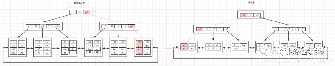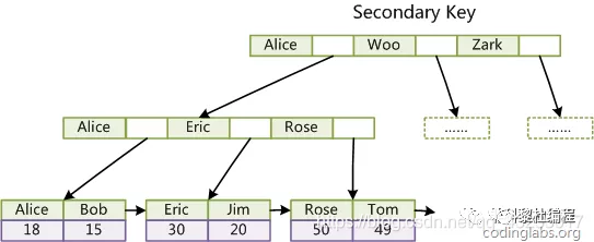 如果给另一个字段指定为普通索引,则普通索引树的结构如下图所示: