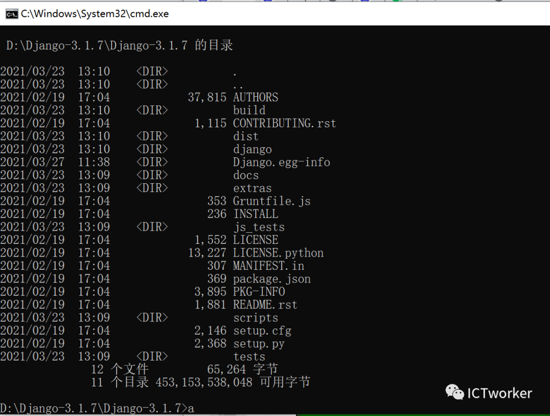 安装Django时我们要用到CMD。在cmd命令窗口下用cd 命令进入到Django解压目录下,找到setup.py文件。