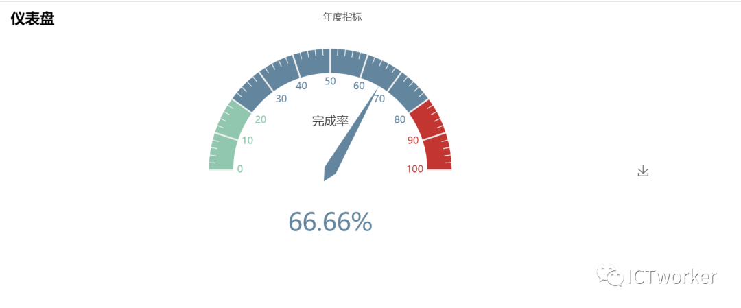 接下来写一下简单的代码实例,首先创建表盘名称,再add添加表盘参数年度指标,完成率,然后再显示出来。