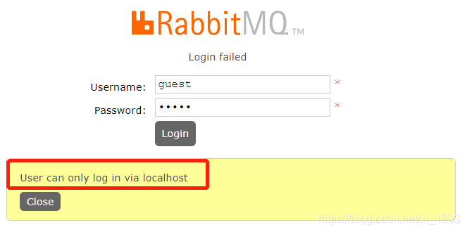 默认的guest/guest用户只能通过本地主机登录,如下图所示。