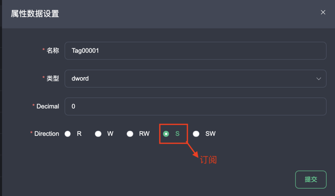 在属性设置中,有可选择订阅功能的按键,进行订阅。该功能采用被动方式接收数据,可以减少 Neuron 对设备读操作的次数,从而减少网络流量。在被订阅的点位在 OPC UA 服务端开启可订阅权限的情况下,该点位的数据变化会自动更新到 Neuron 上。