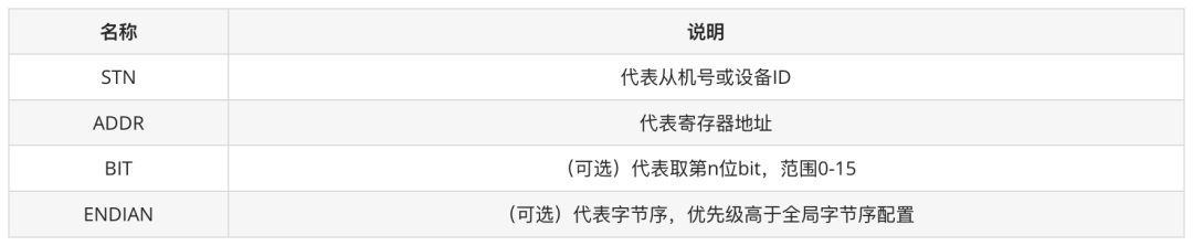 驱动地址格式:STN!ADDR.BIT#ENDIAN