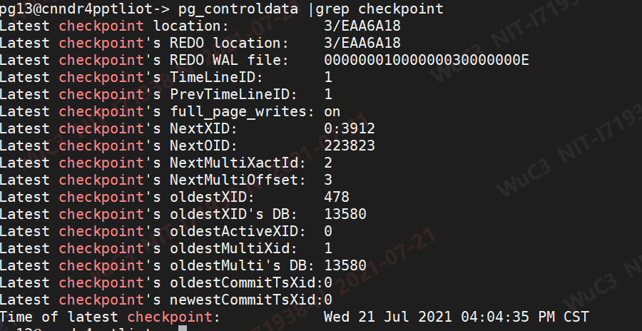 当数据库进行崩溃恢复时,因为需要恢复异常关闭时丢失的共享内存中的数据,所以需要通过checkpoint来作为基础,不断的应用wal日志来恢复。而checkpoint相关的信息在pg中是存放在控制文件中的,由ControlFileData结构体存储: