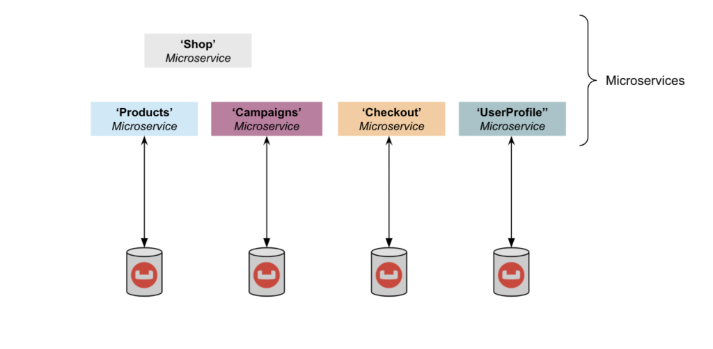 如果你对于隔离不同服务之间的数据没有严格的要求,或者还有其他用于确保每个微服务仅在自己的数据库中运行的手段,那么我们可以让多个微服务使用同一个桶。一般来说,桶的共享使用是通过识别文档中的密钥或额外类型属性来完成的。
