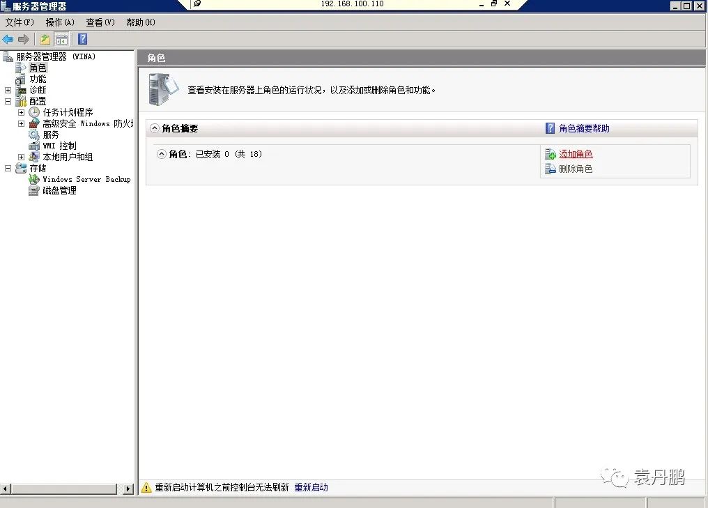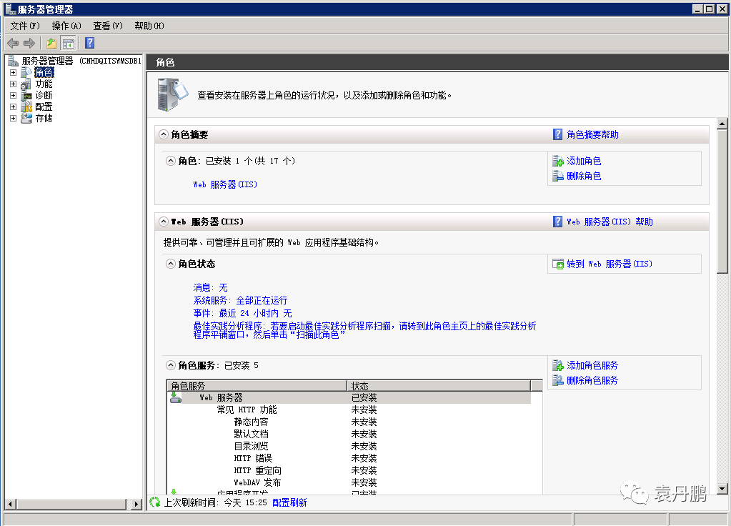 操作:运行“服务器管理”中的“角色”,单击添加“角色”