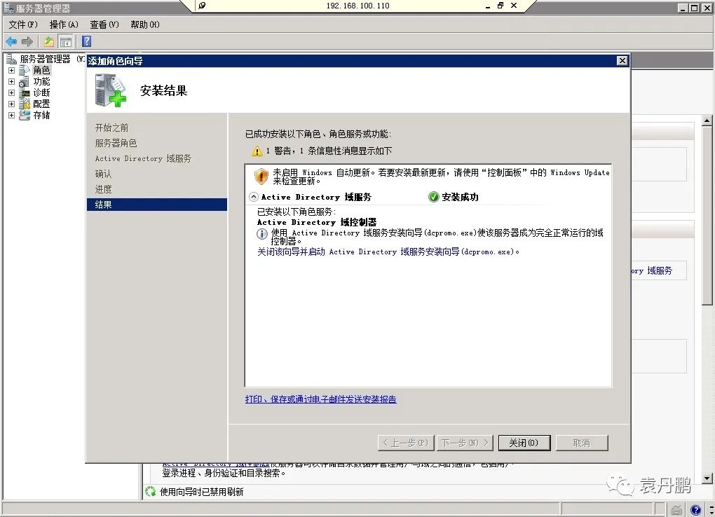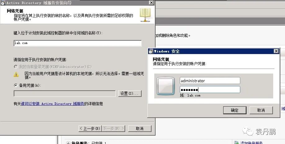 安装域服务提示:①本机刚安装完系统,未安装其他软件