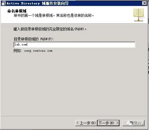 操作:输入“新域的DNS全名”,点击“下一步”继续安装