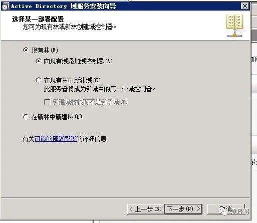 操作:由于本方案采用的是集群中的计算机均为域控制器,此为第二域控所以选择“向现有域中添加域控制器”