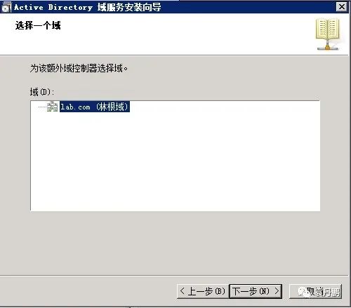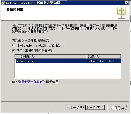 选择“使用此特定的域控制器”,单击WINA.lab.com后,“下一步”继续