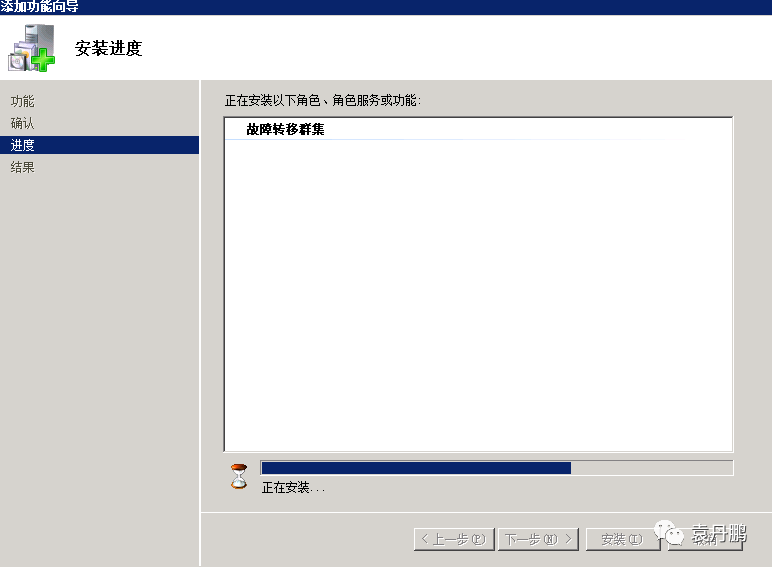 安装节点2的活动目录,此时设备之间的连接状态没有改变,节点1和节点2应该是启动的并与磁盘相连,网络之间畅通,包括心跳网。