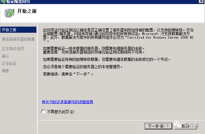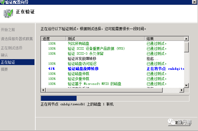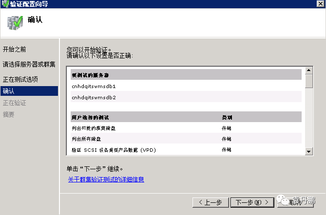 点击验证配置,此项操作主要是验两台以至多台集群节点服务器对存储的识别及为以后的创建节点做一个前期的验证。