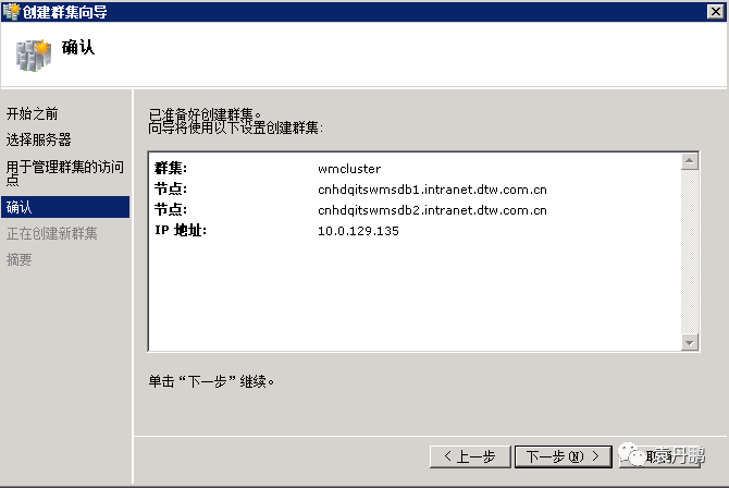 在增加第二台机器cnhdqitswmsdb2的时候提示,此时到另外一台机器上执行如上所框图的增加集群操作,以在cnhdqitswmsdb2节点机器上增加集群功能。