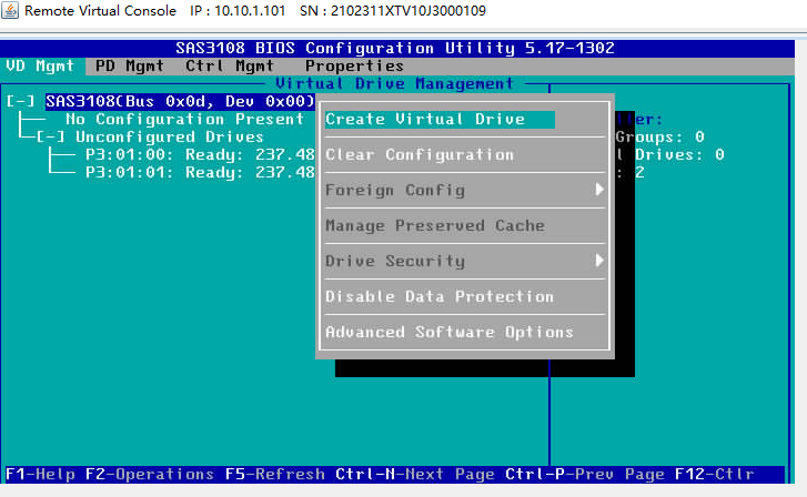 创建阵列卡处按F2,创建阵列Raid1