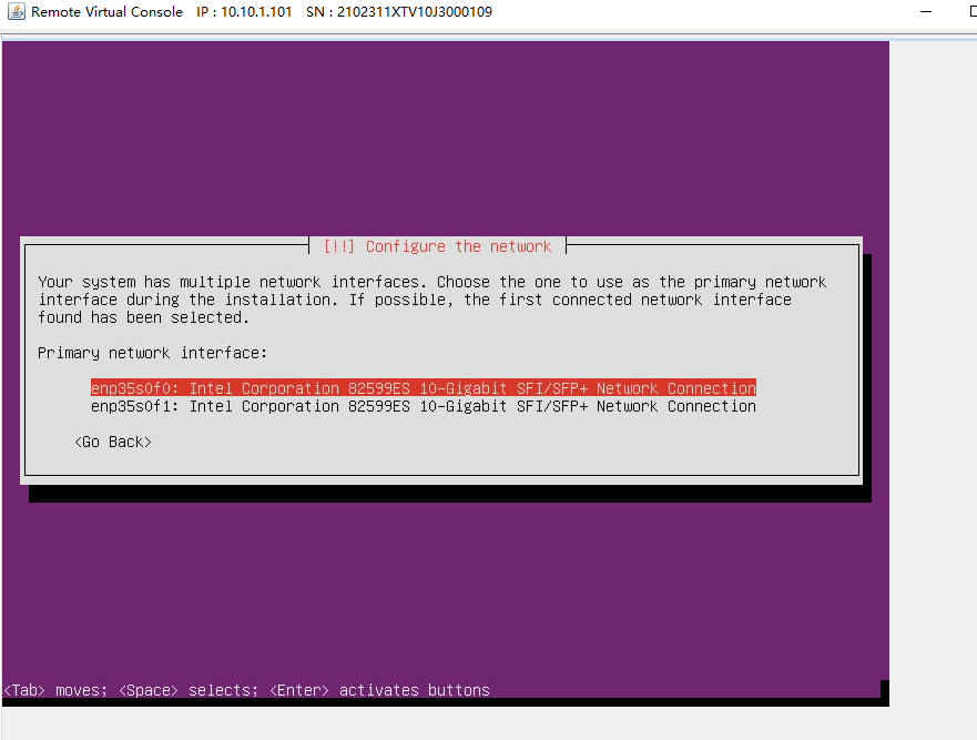 加载完成之后,显示网络配置,继续默认选项。