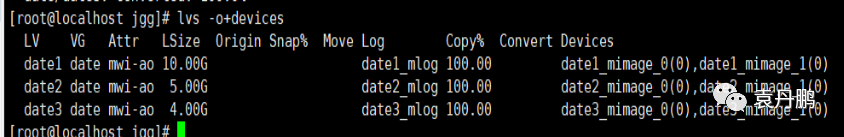 lvconvert -b -m 1 dev/date/date1 pvpath dev/sdd1 #-b 选项是放入后台执行