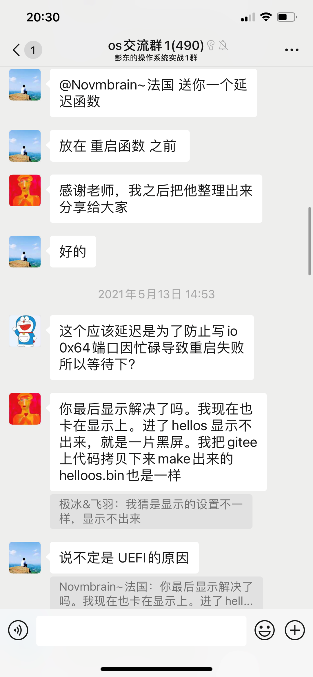 这让我想起之前我刚进入自制操作系统这个领域,还是个小白时,疯狂找各种群咨询问题,当时加了做 bookos 操作系统的小骨头的 QQ 群,在那里很多问题都找到了答案,所以我对讨论群是非常有感情的。