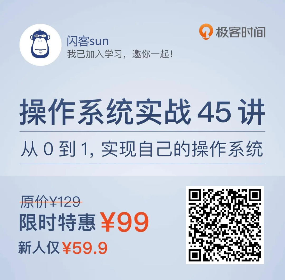 不过极客时间的一款新专栏做到了,由彭东大佬撰写的《操作系统实战 45讲》,一步步实现一个基于 x86 平台的 64 位多进程的操作系统——Cosmos。这真是从 0 到 1,手把手教你自制一个操作系统了,不仅如此,专栏中对于 Linux 内核也讲解得很透彻。