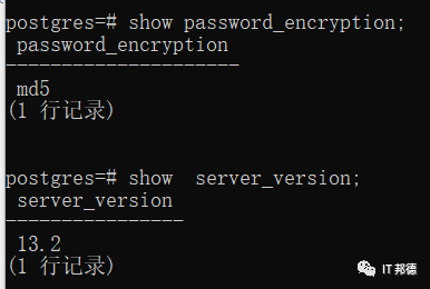 从上图可以看出,最新的PG13.3加密算法已做了更改,故需要调整参数文件