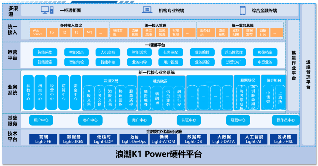 联合方案基础设施层采用浪潮K1 Power服务器,由K1 Power保证核心业务系统的强数据一致性,完成证券行业对系统可靠性的最根本需求的保证。