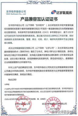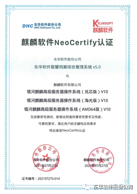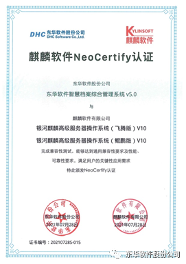 最近,东华软件商业影像档案事业部自主研发的产品智慧档案综合管理系统V5.0通过了银河麒麟AMD64版本V10、银河麒麟鲲鹏版本V10、达梦数据库DM]V8.1、华为TaiShan200鲲鹏服务兼容性认证。同时,针对目前越来越普遍的移动办公场景,档案系统移动端应用也在鸿蒙HarmonyOS 2.0操作系统上做了重构,完全满足移动端国内用户需求。东华软件智慧档案综合管理系统V5.0产品功能完善成熟,性能优异稳定并具有良好的开放兼容性,使客户在国内外同类高性能软件产品选择上更加灵活自由。