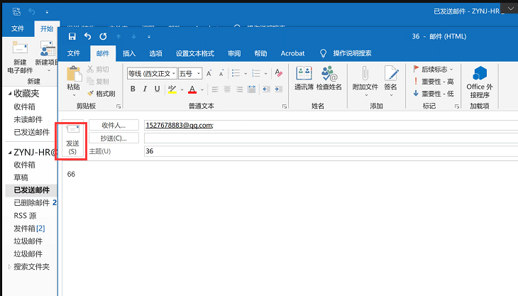 Outlook 2016发送邮件时,点击发送无法正常发送,需要在发送/接收中点更新文件夹发可以正常发送