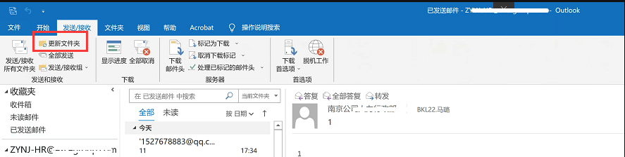 1.4、在收件箱中的邮件,当点击送/接收下面的,更新文件夹,发件箱中的邮件才会被发送出去。这个问题该怎么解决一下呢?