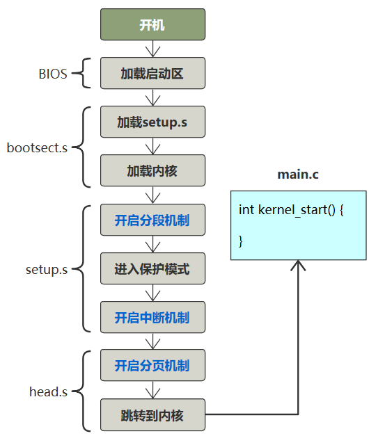有了之前这么多铺垫,今天终于可以正式进入内核代码了!没有读过之前几篇的朋友也不必着急,今天我们的任务就是干干净净地用 c 语言从这个入口函数写起,之前的代码将苦力活都做好后,最后一条汇编语句就是乖乖地跳转到这个入口函数开始执行。