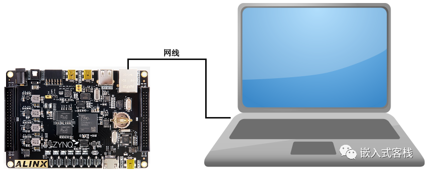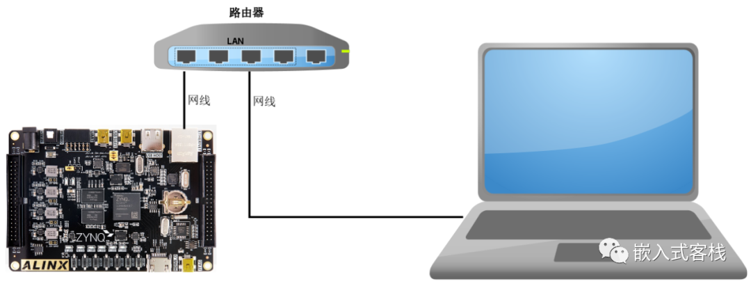 基于ZYNQ芯片设计的一块嵌入式板子,板上运行Linux需要将大量的数据通过网口传输给电脑。这里借用黑金AX7010开发板示例,事实上也是这样做实验的。最开始系统是这样工作的: