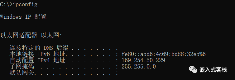 从而开发板IP地址为169.254.3.140,电脑的IP为169.254.50.229,子网掩码都是255.255.0.0,所以电脑与开发板处于同一个子网中。剩下做应用就是利用socket进行TCP/UDP通信了。